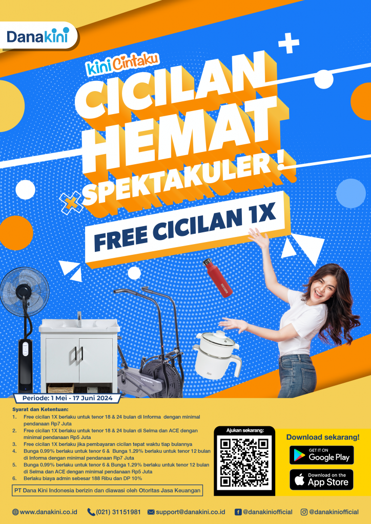 - Free 1x cicilan akan didapatkan di bulan terakhir (Ex: free cicilan di bulan ke-24 untuk tenor 24 bulan).