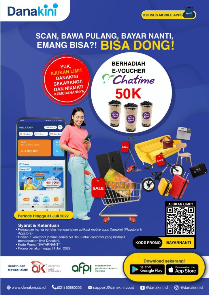 - Hadiah e – voucher Chatime senilai 50 Ribu untuk customer yang berhasil mendapatkan limit Danakini