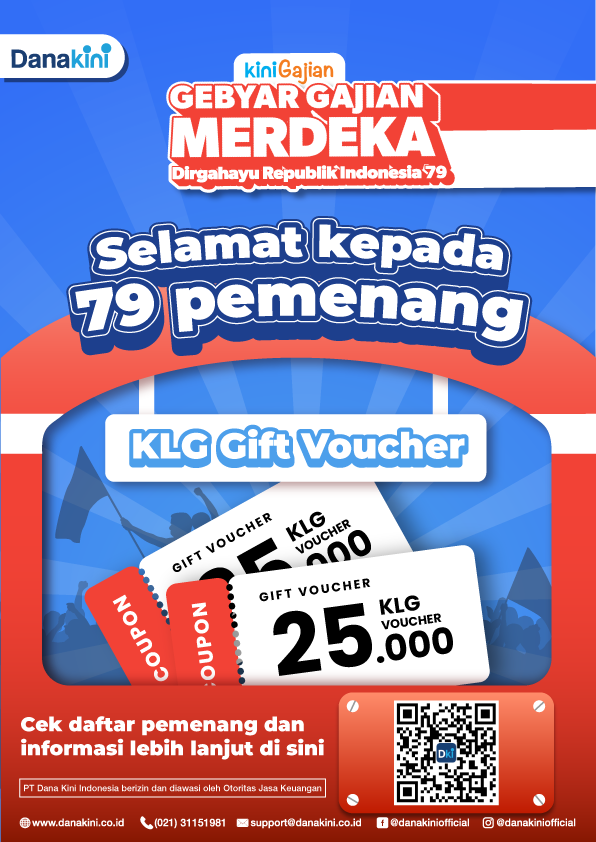 Untuk para pemenang, harap cek pesan WhatsApp di nomor yang terdaftar pada Aplikasi Danakini untuk mengklaim KLG Gift Voucher.